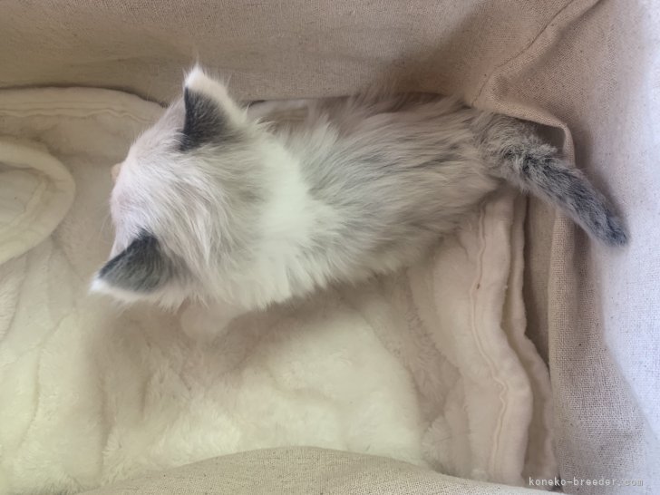 耳のホワイトはポイントカラーのラグドールにとってはミスカラーの一つなのですが、そのホワイトのマーキングが蝶々🦋みたいで可愛いとおっしゃって頂けたのがとても印象に残る嬉しいお言葉でした。