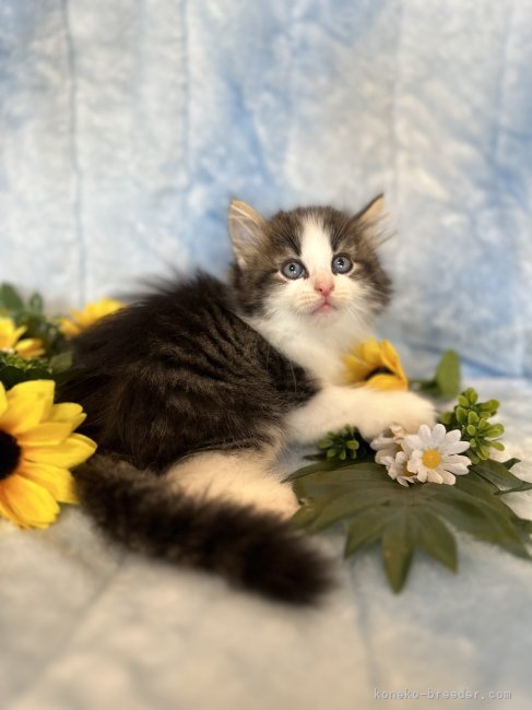 毛色 ブラック(ブラウン)タビーアンドホワイト
