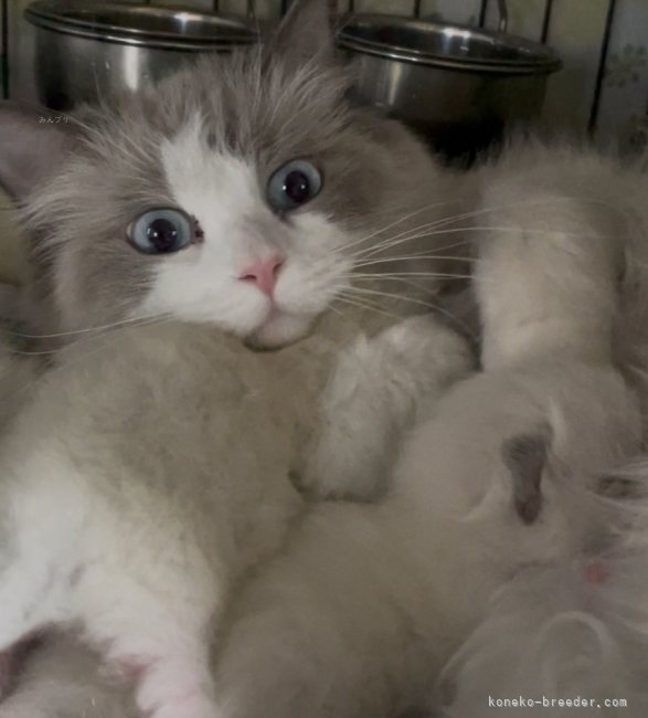ラグドールの4兄弟が生まれました。ママがべったりお世話してくれているおかげで、丸々と成長し...