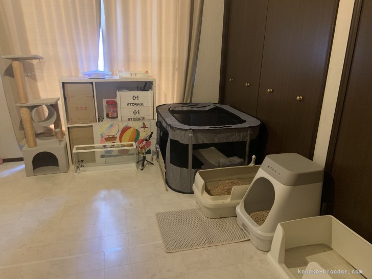 玄関にはエアドッグ、部屋にはジアイーノを設置して、常に清潔な猫舎を心がけています。