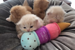 💞生後6日目クリームマンチカン赤ちゃんたち💞✅生後9日目のクリームマンチカン3兄弟姉妹💞 クリームカラーが優しい印象の可愛い子猫...