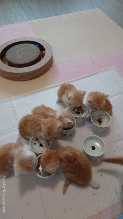 お産から子育てまでずっと一緒に付き添っているので子猫もとても人懐こく甘えたさんが多いです。