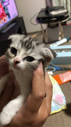 シルバータビー&ホワイトの子、元気です😆赤ちゃんみたいに抱っこされてうるうるおめめ🥹笑 もう少しできっと良くなるからね☺️