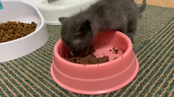 離乳が始まりました。掃除をしていまら、一番小柄な女の子が、音を立てながら一心不乱に母猫のご飯を食べていました。