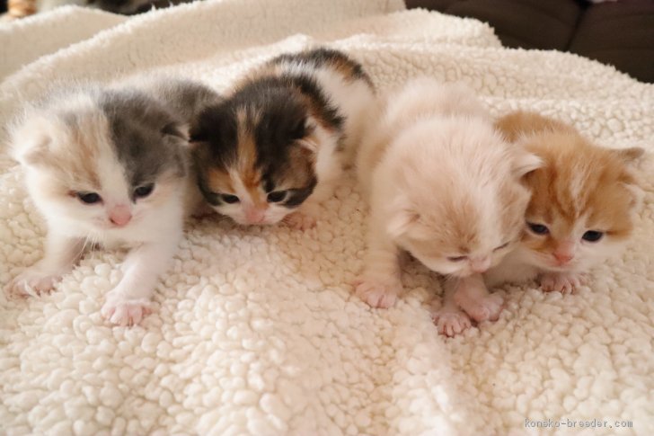 2020.2.3 生れ スコティッシュフォールド 5兄妹生後13日 すくすく育っています。パパ・ママ・子猫達