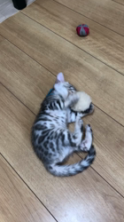 ブラックシルバーに比べ、全体に淡い色合いですが、銀の地色に灰色のスポットがとても美しいシルバーベンガル子猫です。