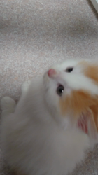 全体が奇麗なホワイト。ふわふわもこもこな、頭にヘッドホンをかぶったような模様のハチワレ男の子です。好奇心旺盛な人懐こい子です。ちょっとおとっりして、マイペースなところがありますが、元気で明るい性格です。遊びが大好き