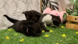 ショップさんなどではなかなかご覧になる機会のないアメリカンショートヘア・ブラックスモークのおチビちゃん達です🐈某大手運送会社さんのイメージキャラクターとしても有名な黒猫ちゃんですが・・・(幸福を運ぶといわれ💑)